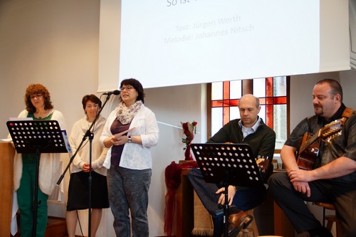 Als Zeichen der Versöhnung feierten wir, um liebevoll geschmückte Tische sitzend, mit Brot und Saft das Abendmahl und konnten uns gegenseitig den Segen Gottes zusprechen. Mit einigen Lobpreisliedern und einem persönlichen Zeugnis beendeten wir den von einem Team gut vorbereiteten Gottesdienst. Ein herzliches Dankeschön an alle, die dazu beigetragen haben.