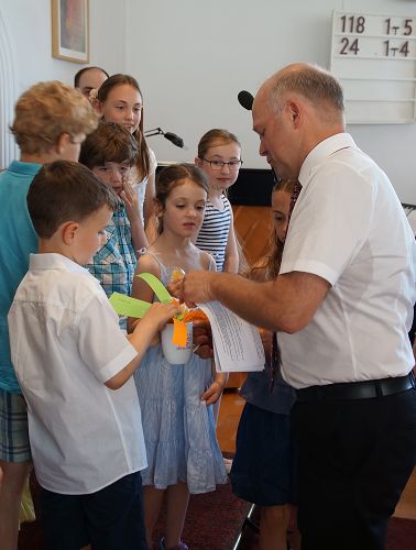 Die Sonntagsschulkinder haben ihn mit dem Lied „Good bye und Tschüß“ und Lollies mit „Dankes“-Fahnen verabschiedet. Wir wissen uns weiter durch unseren Herrn mit ihm verbunden und danken ihm sehr für die alles, was er in Sersheim bewirkt und die Spuren, die er hinterlassen hat. Für seine neue Aufgabe wünschen wir ihm zunächst ein gutes Ankommen und Hineinfinden in die Gemeinde und Gottes reichen Segen für seinen Dienst in Weinsberg.