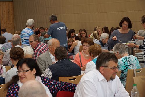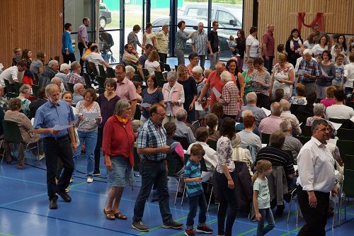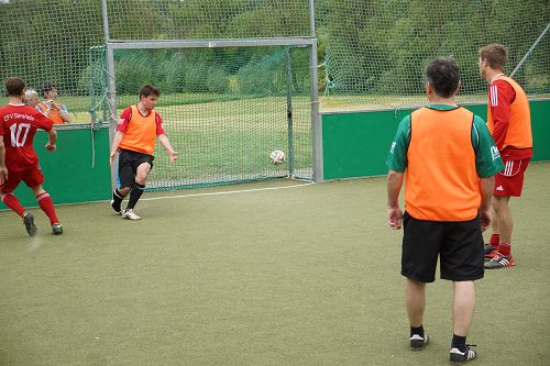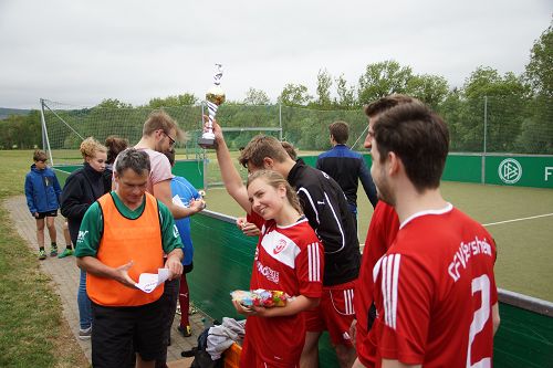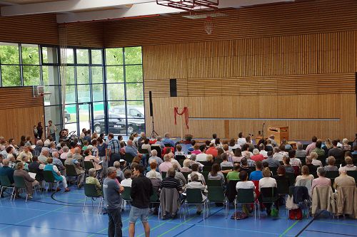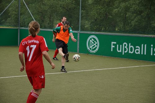 Nach dem Gottesdienst blieben die meisten der rund 250 Besucher zum Maultaschenessen in der Halle. Auch Kuchen für die Leckermäuler waren gebacken worden. Für die Fußballfans gab’s anschließend noch ein Turnier. Die Fussballteams aus Sersheim und Vaihingen, egal ob evangelisch oder methodistisch, alle fighteten um den Wanderpokal und hatten rote Köpfe und einen Riesenspaß.