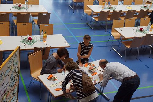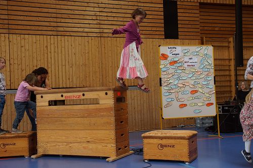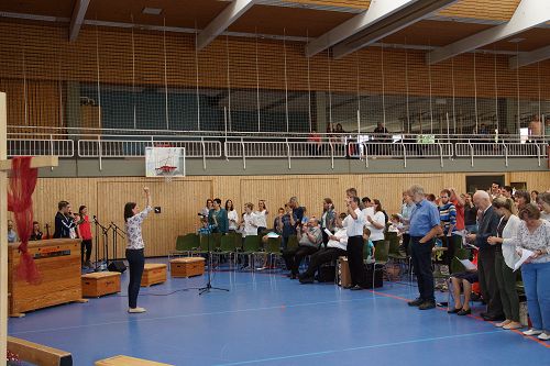 Die Gemeinden der evangelischen und methodistischen Kirche Sersheim und Vaihingen hatten eingeladen zum Familiengottesdienst in der Sport- und Kulturhalle Sersheim. Und bunt wie die Fußabdrücke der kleinen und großen Besucher war das Programm. Für jeden war was dabei: fetzige neue Kinderlieder und bekannte Oldies, Hindernisparcour, um die eigene Fußspur auszutesten und die passende Predigt von Pfarrer Johannes Rau.