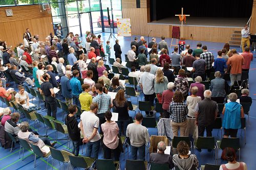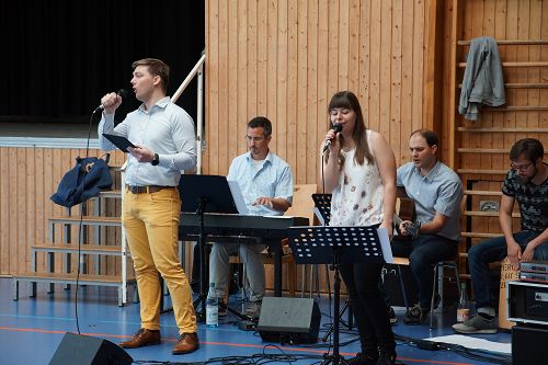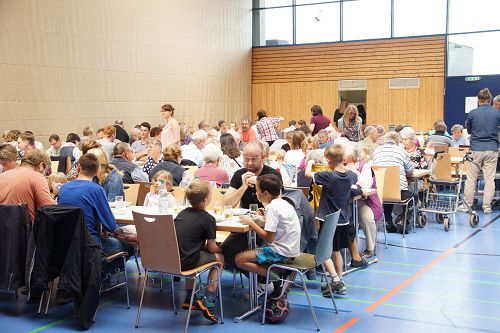 Untermalt wurde der Gottesdienst von vielen Lieder, die von Musikern aus allen beteiligten Gemeinden begleitet wurden. Im Anschluss waren alle Besucher wieder zum Maultaschenessen eingeladen, das die EmK Sersheim vorbereitete und vielen ließen sich noch den leckeren Kuchen schmecken. Natürlich durfte auch das traditionelle Fußballturnier nicht fehlen, das die EmK Vaihingen organisierte.