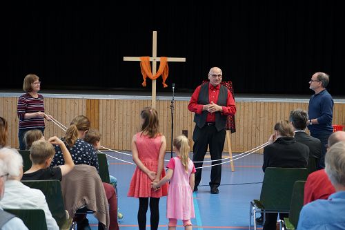 „3 Dinge braucht der Mensch…“ – Unter diesem Thema stand der gemeinsame Himmelfahrtsgottesdienst der EmK Gemeinden Sersheim und Vaihingen/Enz sowie der ev. Kirchengemeinde Sersheim in der Sporthalle in Sersheim. Nach einer Einführung in das Thema von Pastor Gerhard Bauer führte Hans Häberle, ein Zauberer und Verkündiger, durch den nächsten Programmpunkt dieses „zauberhaften“ Gottesdienstes und zeigte erstaunliche Zaubertricks. Er unterstütze auch die Ansprache von Pastor Bernhard Schäfer und sie machten gemeinsam deutlich, was für uns Christen die eigentlich drei wichtigsten Dinge sind: Glaube, Liebe, Hoffnung.