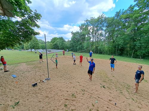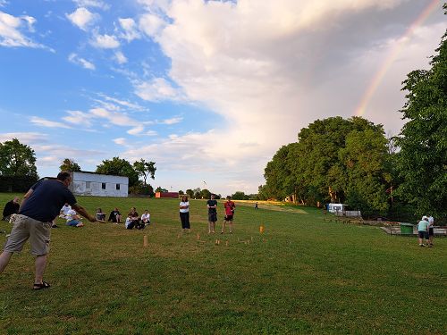 Abends trafen wir uns alle wieder zu einem warmen Abendessen, Spielen auf der Wiese und einem kurzen bunten Abend. Das Highlight dabei war „Dingsda“, das Anna und Leander super vorbereitet hatten.