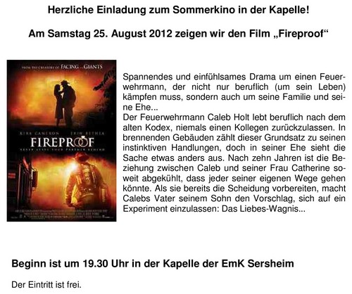 Am Samstag 25. August 2012  zeigten Sonja Mayer und Uta Büchner in unsererKapelle im Rahmen der stattgefundenen Eheabende nun den Film