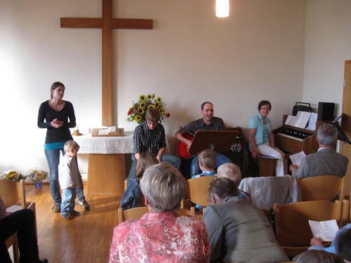 Da das Kapelle in Hohenhaslach immer fest mit der Sonntagsschule verwachsen war, wurde diese auch mit einer durch Tobias Schmitt spannend vorgetragenen Geschichte um Mose mit in den Gottesdienst integriert.