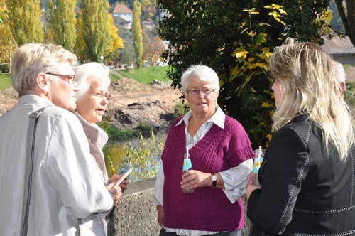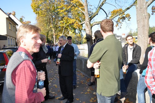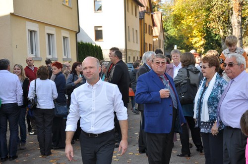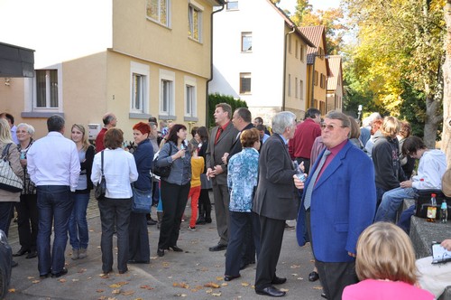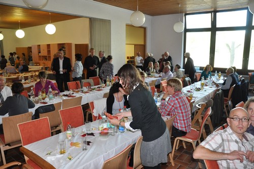 Als Erinnerung an diesen Tag erhielt jeder eine Nachbildung des Kreuzes, das im Gottesdienstraum seit vierzig Jahren angebracht ist. Anschließend wurde der Gemeinde und allen Besuchern ein dem Tage gebührendes Mittagsbuffet serviert. Dazu durfte Oberbürgermeister Frank Schneider und seine Frau herzlich begrüßt werden. Die Gemeinde freute sich auch über die Anwesenheit von Alt-OB Gerhard Knapp und Bischof i. R. Hermann Sticher, der aus der Gemeinde Mühlacker seien Ruf in den kirchlichen Dienst erhielt. Nach dem offiziellen Ende der Festveranstaltung gab es noch lange Gelegenheit untereinander in Erinnerungen an frühere Zeiten auszutauschen.